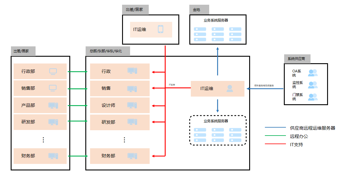 通过对不同职能的员工赋予不同的远程控制权限,实现精细化的授权管理,运维部门、一线办公人员和资源管理部门分工明确、权责清晰。