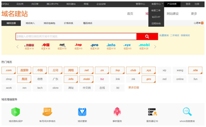 中国域名注册市场相对成熟,申请网站域名最主要的是要选择一个正规的地方去申请。而oray作为专业的域名服务提供商,提供多达150种以上不同后缀类型的顶级域名注册。如果你想要注册优质域名,不妨选择贝锐域名注册,方便快捷。和域名一样,空间服务商的资质,也很重要。空间讲究的除了速度,就是稳定。万一出了点问题,没有客服的时候能让人抓狂。像oray这种24小时值班的空间服务商,可以省去不少烦恼。