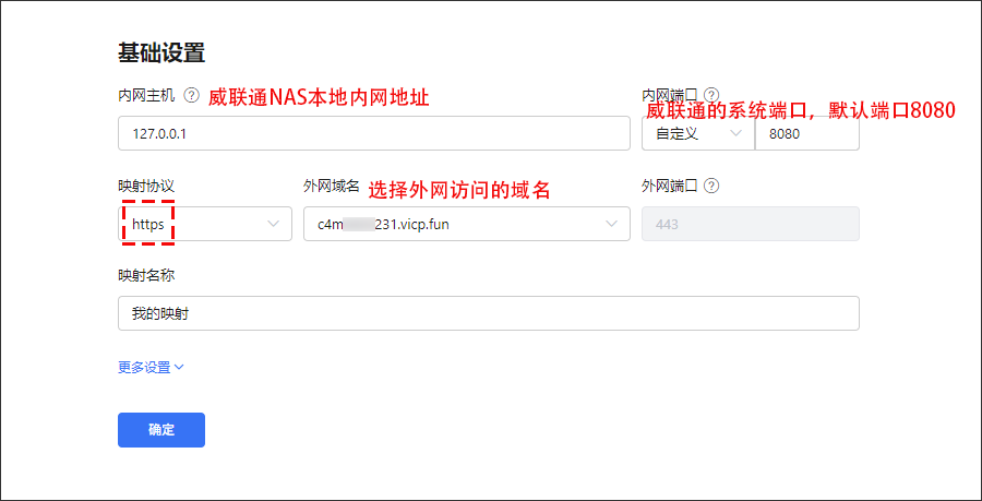 ①内网主机:为威联通NAS服务器IP地址