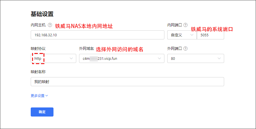 ①内网主机:为铁威马NAS服务器IP地址
