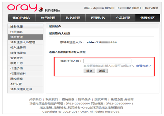 域名注册成功后,即可进入【管理中心】——【域名】——【顶级域名】页面,管理域名。